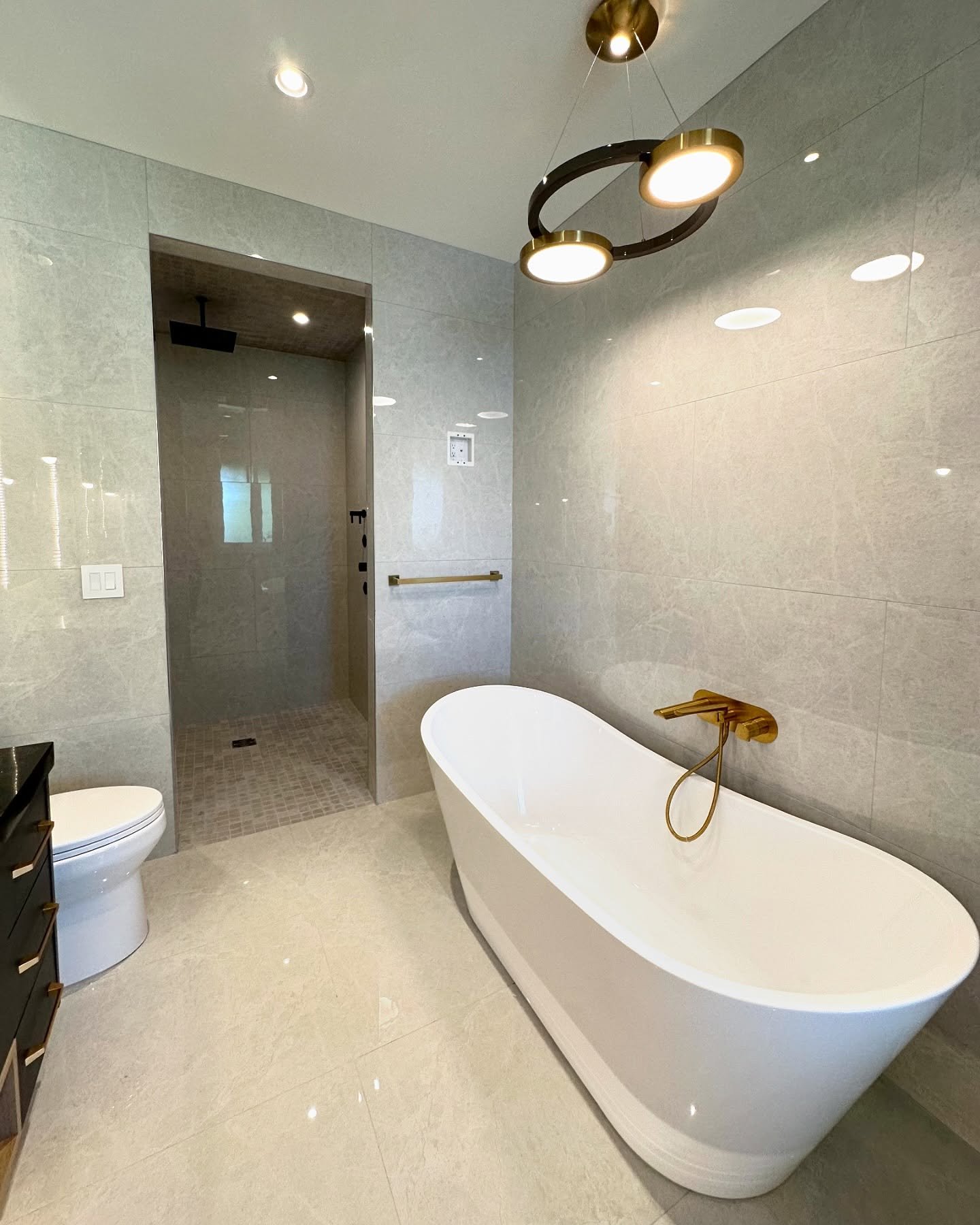 Large tiles in small bathrooms or tiny tiles in spacious bathrooms can throw off balance and flow.